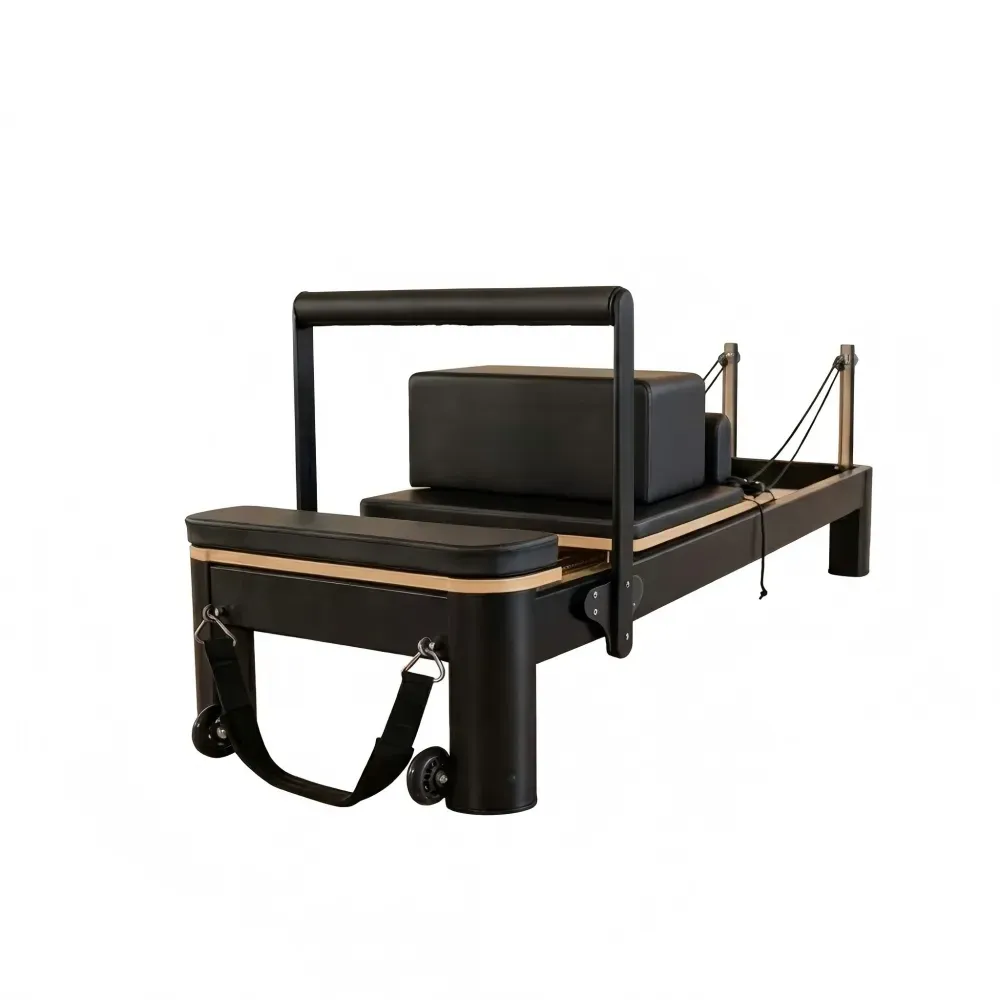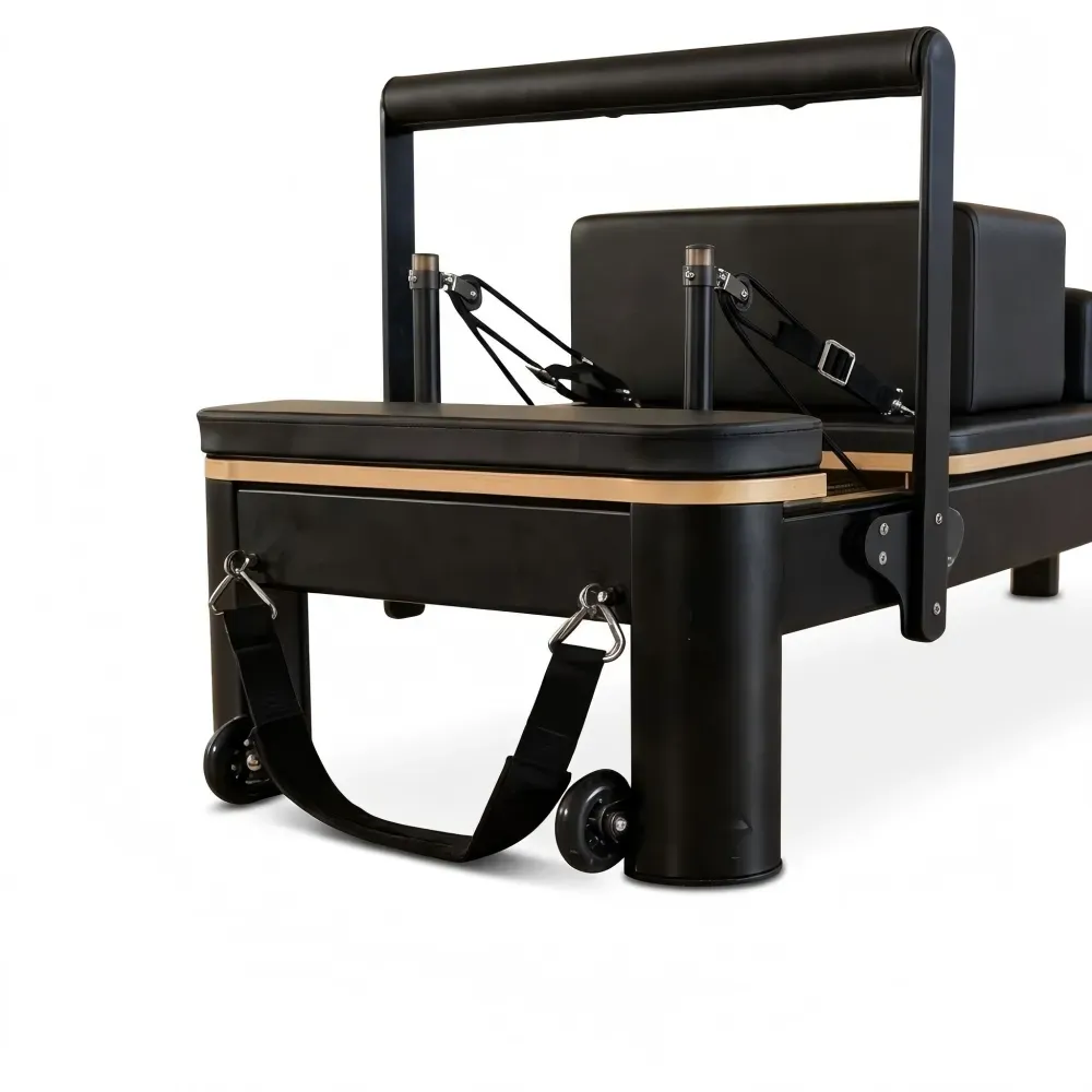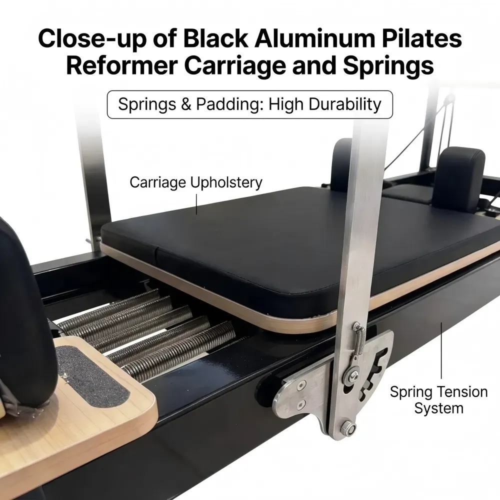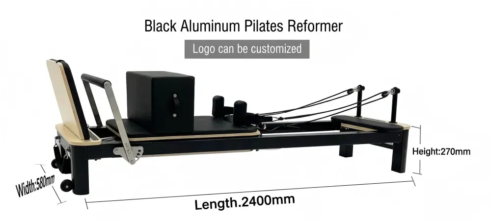 Discover the Elite A1 Onyx Black Reformer. A portable, durable, and eco-friendly aluminum Pilates reformer designed for home exercise. Sleek black finish, customizable logo, and studio-grade performance. Shop the ultimate home fitness equipment today.