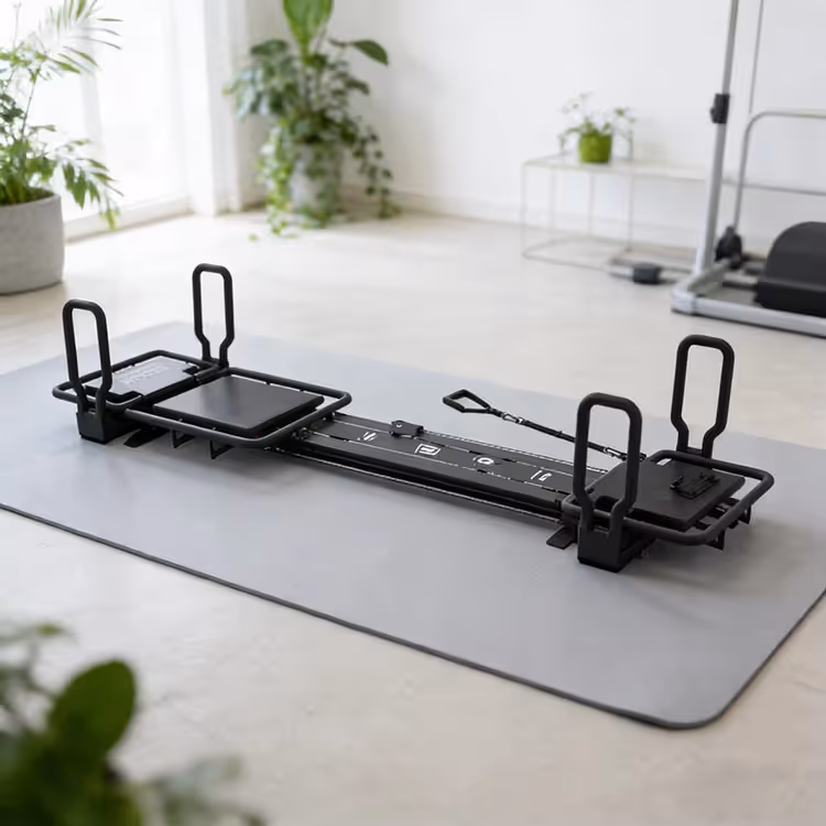 For the instructor building a loyal clientele from a home studio, the Mini Pro offers the professional-grade experience your clients expect. The innovative high-leg design opens up new exercise angles—targeting inner and outer thighs in ways standard compact reformers cannot. The flip-up platforms provide multiple positioning options, allowing for a full range of movements without compromise.